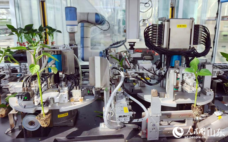 走进济阳区垛石街道安信种苗公司的玻璃工场,映入眼皮的,是正正在忙碌的茄果类嫁接机械人。只见两只“手臂”抓取待用的辣椒苗,放正在两个圆盘状的接穗分手器上, 然后从动切割,完成嫁接、卡子固定,嫁接好的秧苗放正在穴盘上。“这是我们自从研发的第五代机械人,采用气动为从、电动为辅。”安信种苗研发核心总工程师宋振华引见道,机械人能够从动完成削切、嫁接,双工位变换,从动夹持上料,实现机械化持续功课,嫁接效率提拔30%-40%。